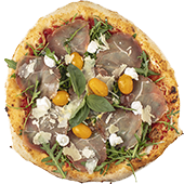 pelati, mozzarella, fiocco pršut, rukola, buffalo ricota, pecorino sir, datterini, sveža bazilika, oljčno olje